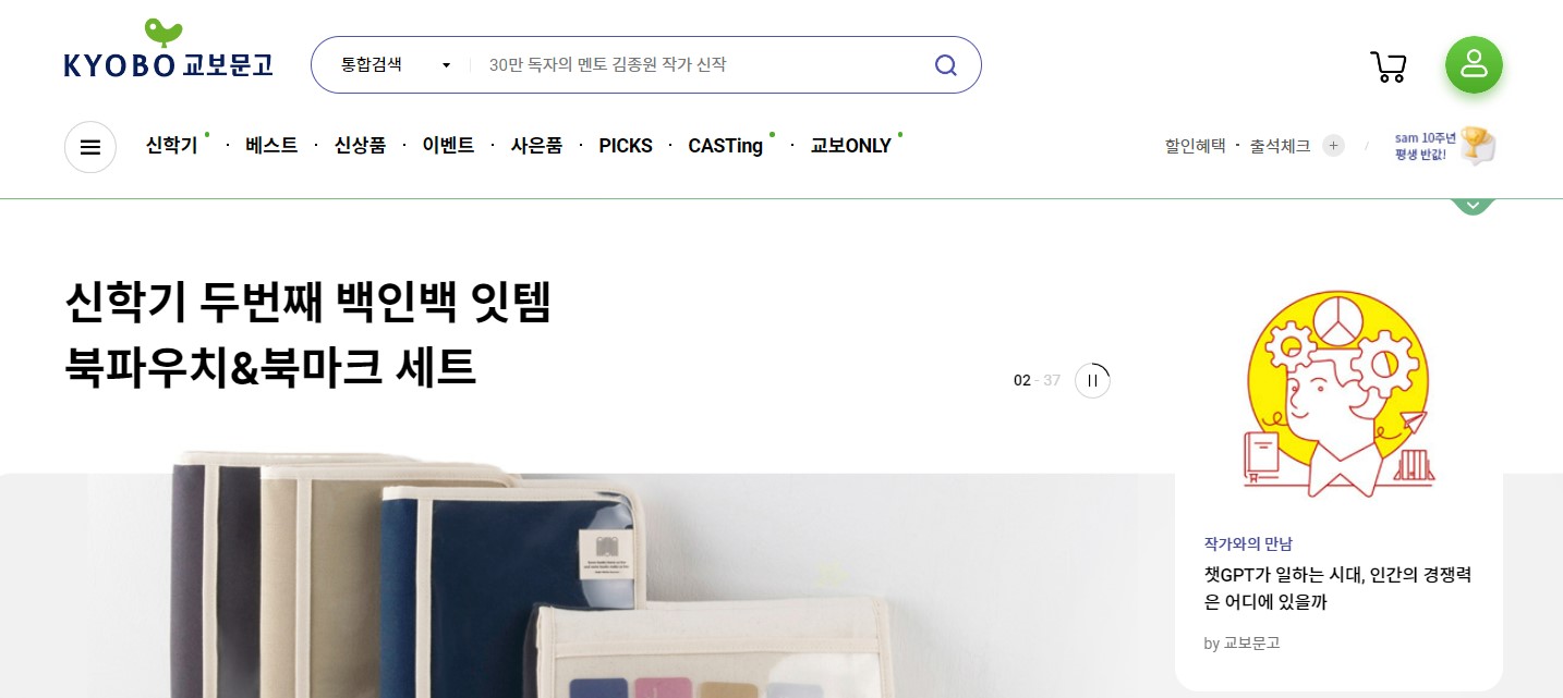 | 교보문고 | 도서류 1만원 이상 | 오전 3시까지 결제하면 당일배송 가능 | 고정 | ||