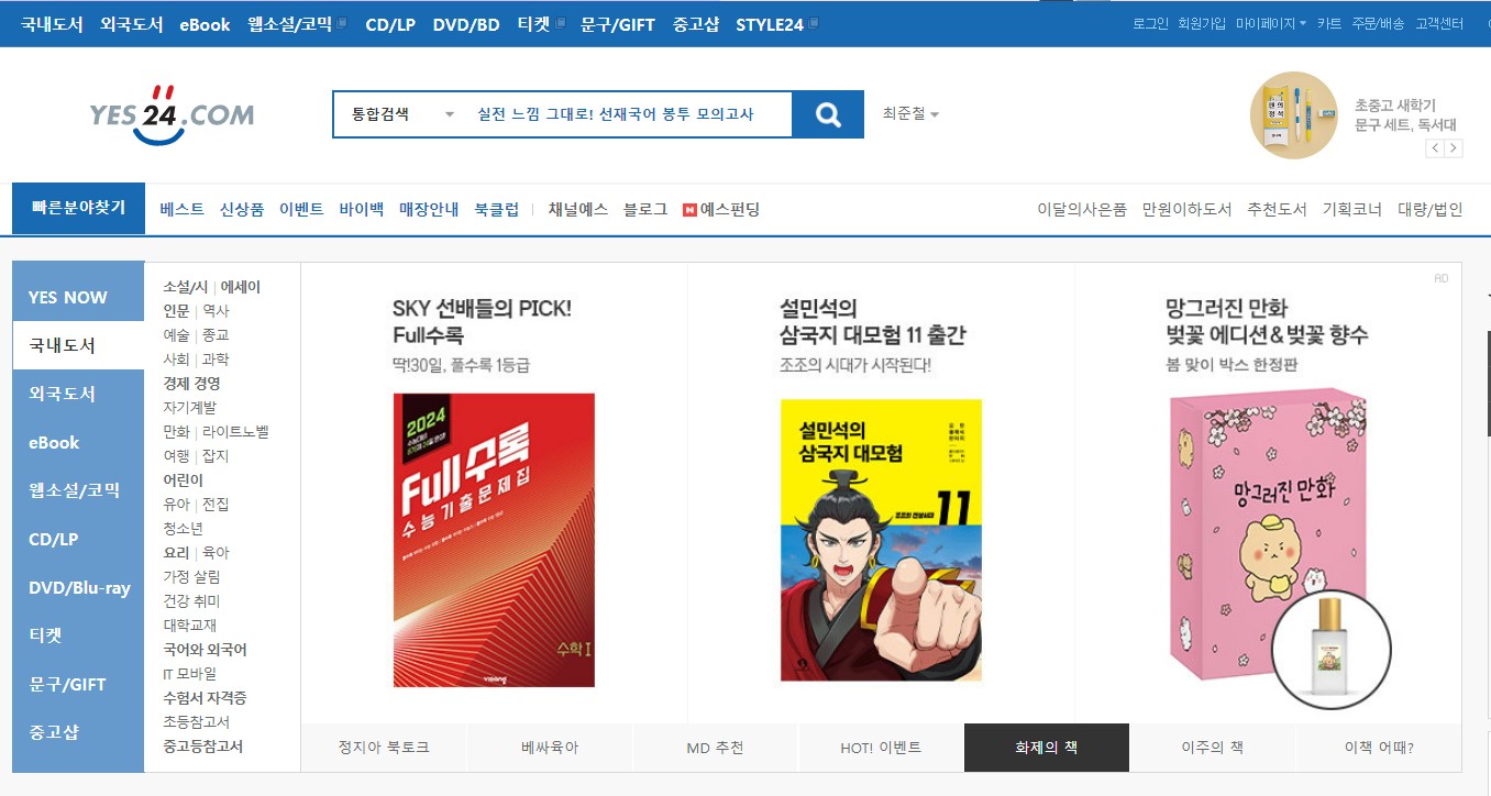 | 예스24 | 1만 5000원 이상 | 도서 주문 시 당일배송 및 아침배송, 하루배송, 지정일배송 등으로 세분화(서울기준) 오후 3시 전 도서 주문 시 당일 저녁에 돋서를 받아 볼 수 있는 서비스 | 고정 | ||