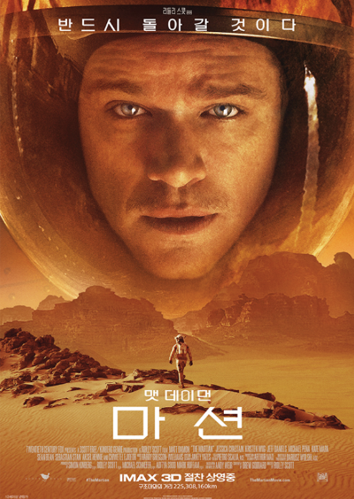 먼 미래에 화성에 갈 수 있게된 어느날, 화성 탐사를 위해 지구에서 파견된 아레스 3팀 대원들은 거대한 화성 폭풍을 만나 화성을 탈출하기로 합니다. 하지만 대원 중 한 명인 마크가 폭풍으로 인한 파편에 맞아 날아갔고 대원들은 그가 죽었다고 생각하고 화성을 탈출하게 됩니다. 대원들이 떠난지 한참 후 마크는 극적으로 정신을 차려 홀로 남겨지게 됩니다.